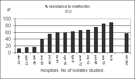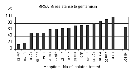 Percent (%) resistance to selected abtibiotics by hospital